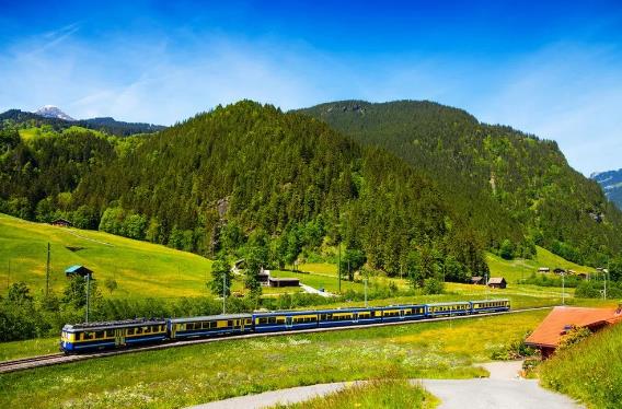 一列火车打破浓绿宁静的草原,和像宝石一样闪烁的湖泊,以及平静祥和的村庄,就是瑞士名画,让人身未动心已远。
