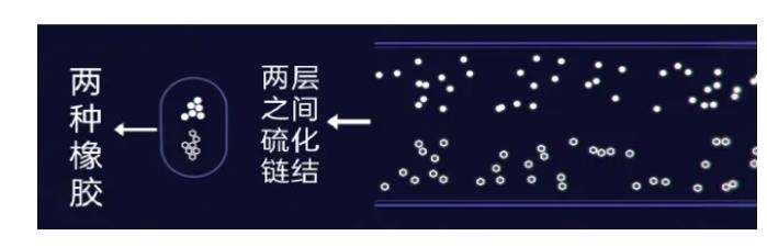 跑道由两层配方各不相同的固体橡胶共硫化组成。通过硫化过程(制造复合橡胶的界面交联技术),两层之间的分子链结合形成
