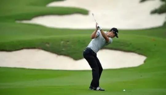 右膝保持的非常好很多人在上杆时,右膝会不自觉地绷直或者向外侧移动,这些举动都会使身体角度发生变化,而且对于破坏上杆时的蓄力。为了清楚地感受上杆过程中右膝的变化,可以选择在右脚跟下面放置一颗球,然后进行挥杆,这样就能感觉到右膝动作的正确与否。收杆是击球过后的惯性所产生的自然反应,从一个人的收杆可以反应出他的挥杆动作以及击球质量。很多人击球过后动作就停止了,收杆位置很低,像是被固定住了。那么他的下杆击球后期一定不是加速的,而是减速的。高尔夫的挥杆是要在击球过后继续保持加速,将球杆收至身体的后方才算完整。完整的收杆可以让挥杆速度最大化,提供更远的击球距离。尝试着每一次击球都把收杆动作做完整,你会发现挥杆更快,击球更远。