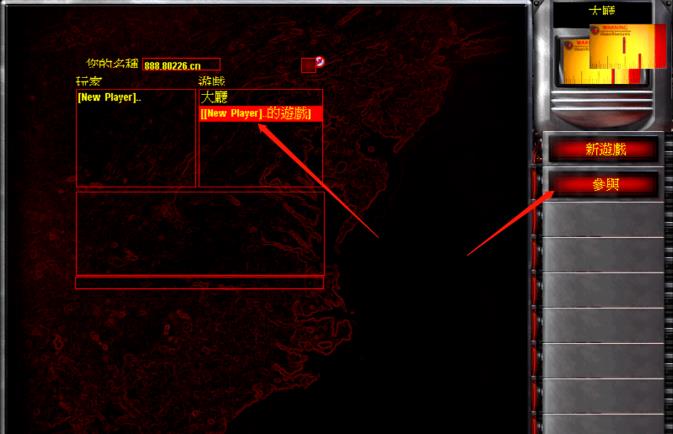 4.进入游戏后,点击游戏菜单右侧的“网络”选项,寻找在线的玩家,然后选取玩家创建的房间,点参与,就可以开始对战了(也可以点击新游戏,自己创建房间,等其他玩家加入)