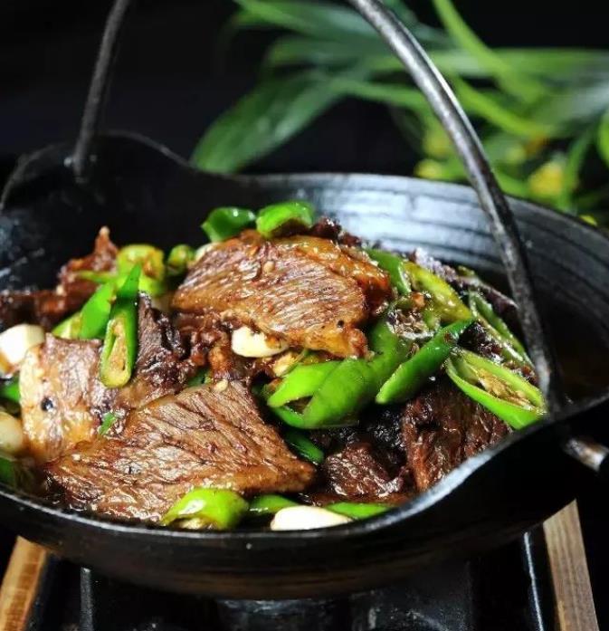 主料:牛肚腩500克,青椒200克。