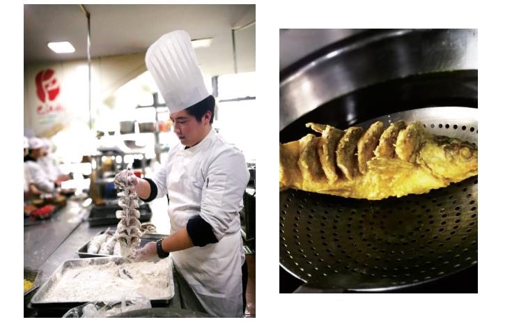 李盛开的脆皮鱼也有自己的故事可讲。据他介绍,其技艺传承于烹饪大师王志忠。
