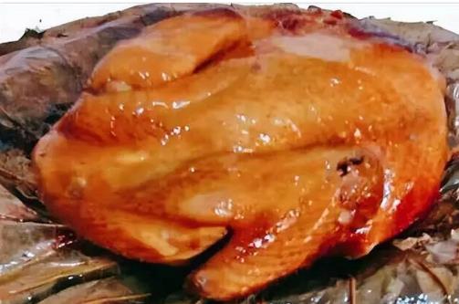 叫化鸡的制法与周代"八珍"之一的"炮豚"相似,"炮豚"就是用黏土把乳猪包裹起,加以烧烤,然后再进一步加工而成的菜。其色泽