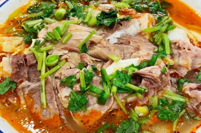 太和板面的面条是经过反复揉面、摔面制作而成,非常劲道,宽厚爽滑,汤头由羊肉和秘制香料熬制而成,臊子要用羊肉、辣椒、羊油炒制而成。一碗好的板面,香辣过瘾,吃得大汗淋漓,真不愧是面条界的“天花板”。