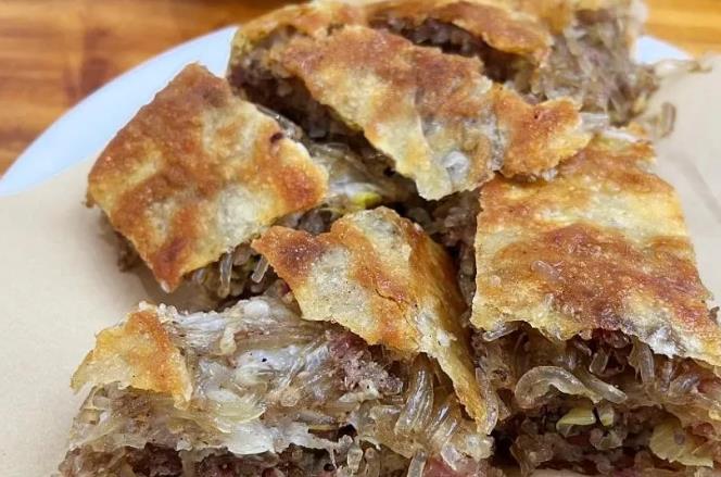 亳州牛肉馍做法也很复杂,面团要反复揉搓,和至软硬适中,馅儿要用牛肉末、粉丝,辅以姜末、胡椒粉等调制而成,包馅后擀成三四十公分的大饼,放到饼铛里煎烤而成。做好的牛肉馍,酥脆可口,鲜嫩多汁,粗犷中透露着细腻。